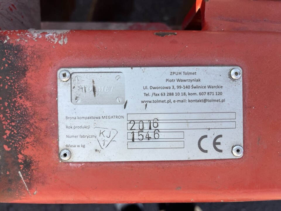 Борона ротаційна, була у використанні, TOLMET, 2016 р.в., реєстраційний №1546, червоного кольору