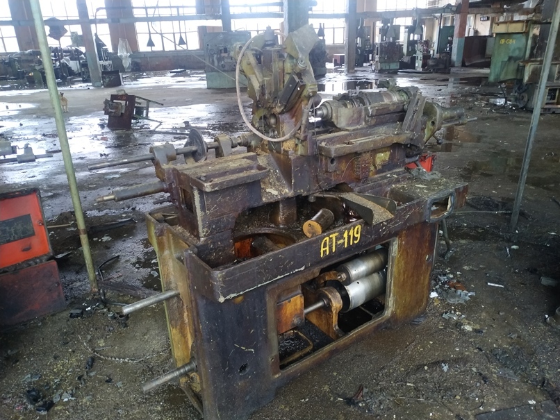 Обладнання (станки, верстати, автомати) у неробочому стані, частково розукомплектовані (відсутні двигуни, частини навісного обладнання, пульти керування, тощо) з інвентарними номерами: ТП-002, ПГ-092, ПГ-100, ПН-009, АР-066, АР-080, АТ-122, АТ-119, АР-078, АР-084, АР-069, ТВ-581, КР-033, перебуває у незадовільному стані, механічні та корозійні ушкодження про всьому корпусу та робочих вузлах.