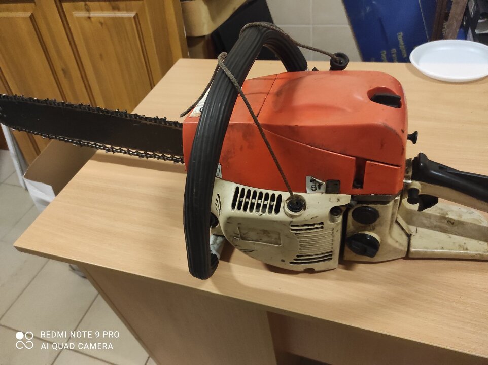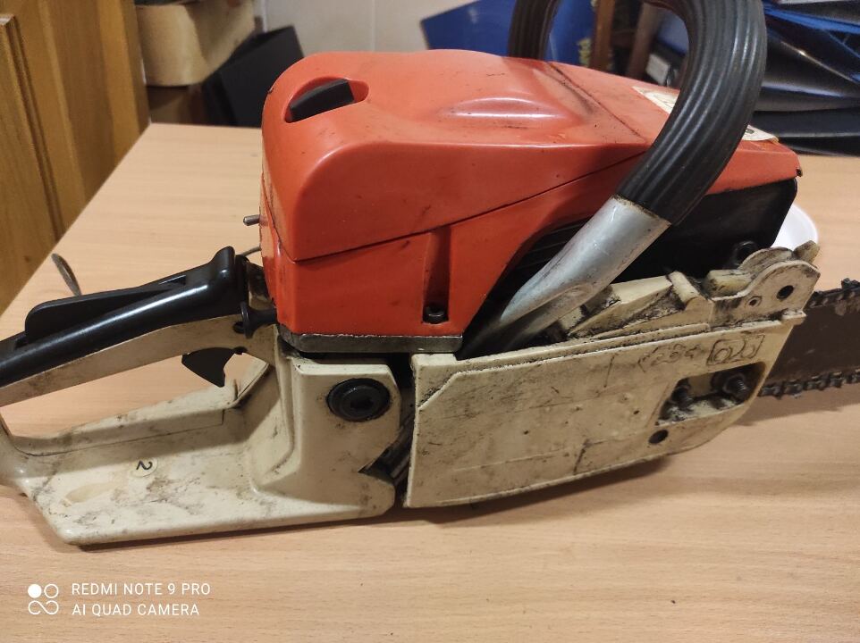 Конфіскація майна за рішенням суду: бензопила біло-помаранчевого кольору, б/в