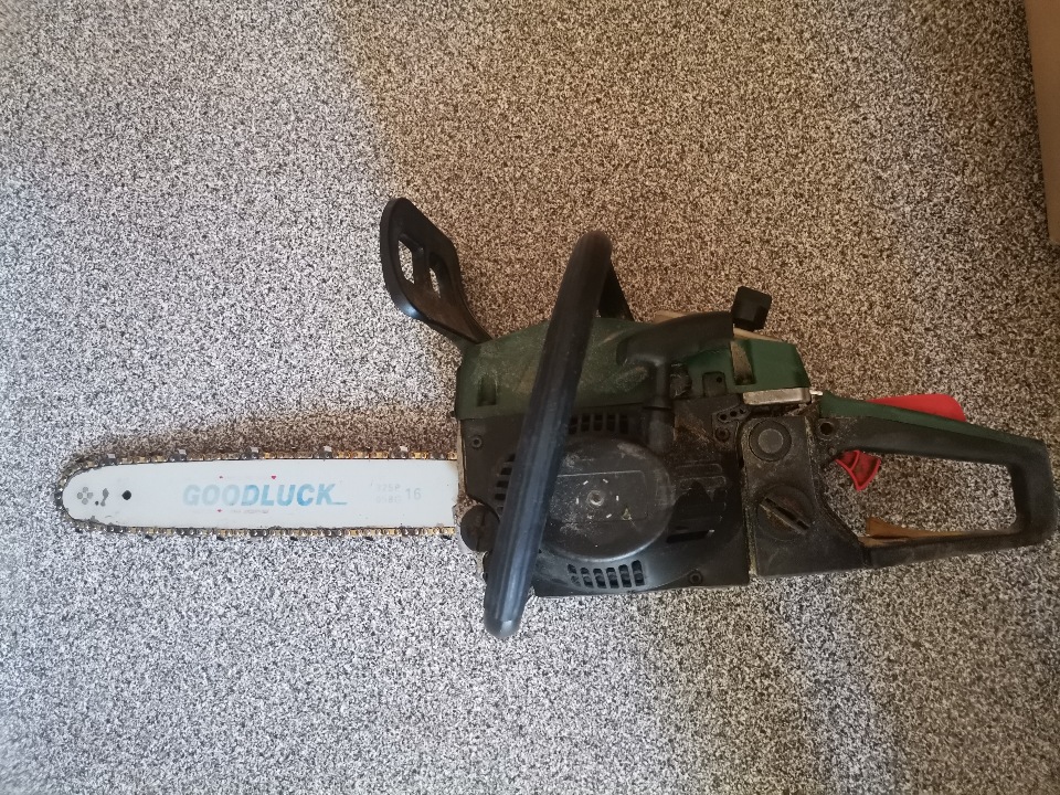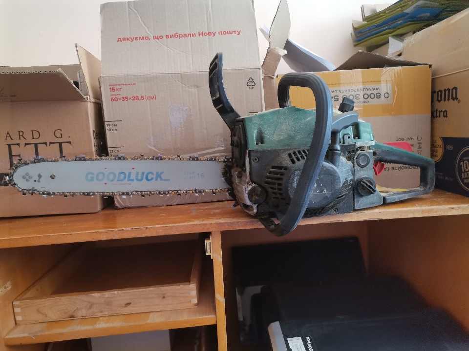 Конфісковане майно за рішенням суду: бензопила "Goodluck" в корпусі чорно-зеленого кольору, б/в
