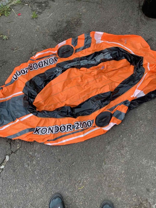 Конфісковане майно за рішенням суду: гумовий човен помаранчевого кольору марки "KONDOR-2000" 1 шт., велосипед чорного кольору марки "COMANCHE" 1 шт., б/в