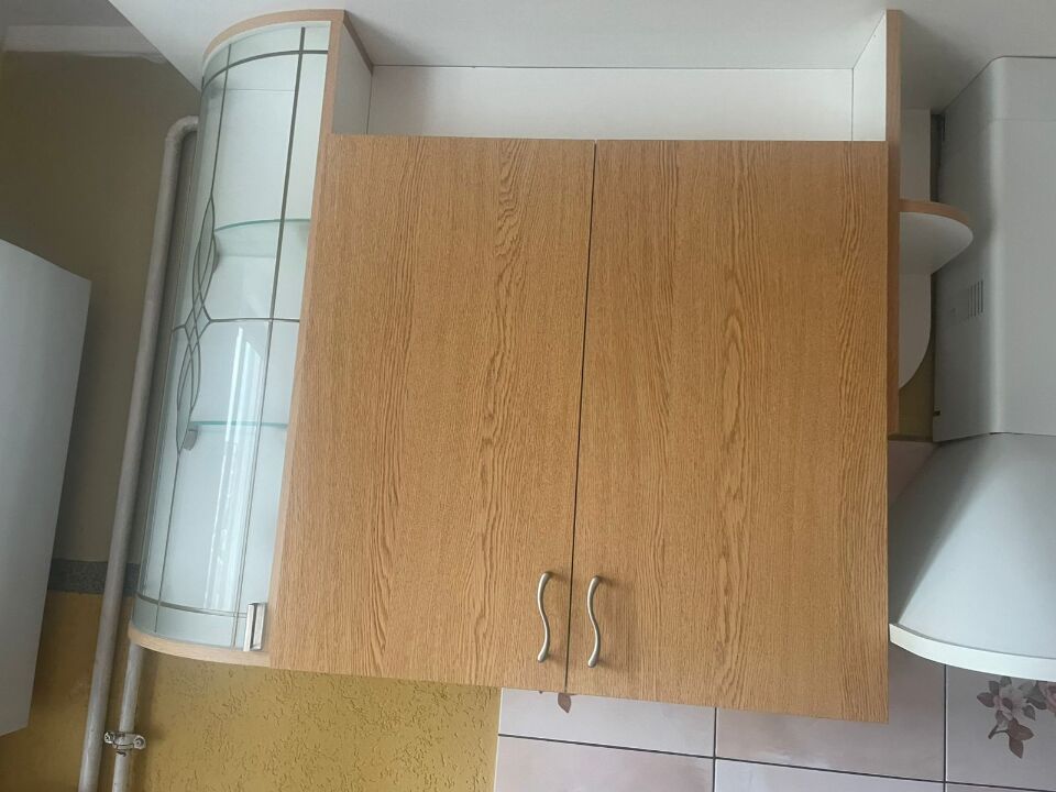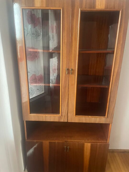4. Шафа кухонна коричневого кольору з скляними дверима (1 шт. б/в).