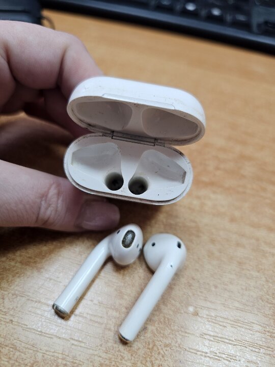 Конфісковане майно за рішенням суду: бездротові навушники Apple AirPods2 (A1602), білого кольору, стан б/в