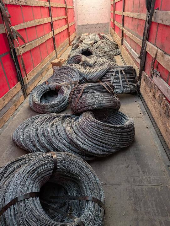 Дріт оцинкований - 2,5мм., скручений в бухти (на окремих бухтах бруд та пошкоджений матеріал, яким вони скріплені, встановити наявність іржі на дроті візуально не вбачається можливим, майно забруднене із різних сторін різною щільністю бруду) дріт загальної вагою 7462,5 кг.