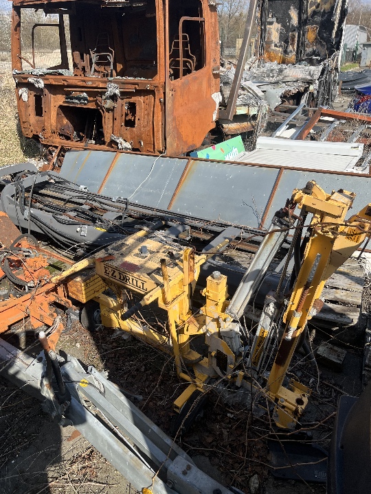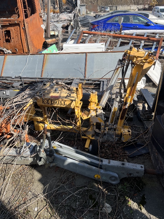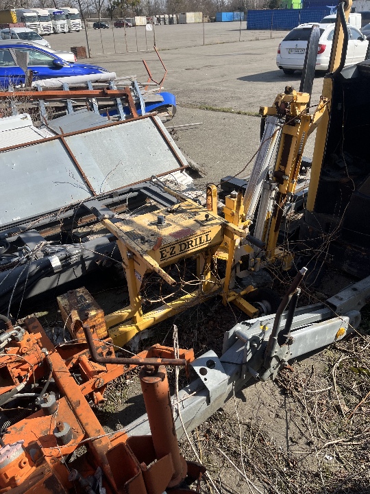 Свердлильна установка E-Z Drill 210 SRA, колір жовтий, реєстраційний номер Т3242. Наявні подряпини по всьому периметру кузова, Відсутня частина навісного обладнання. Пошкоджені колеса. Відсутні ключі та техпаспорт.