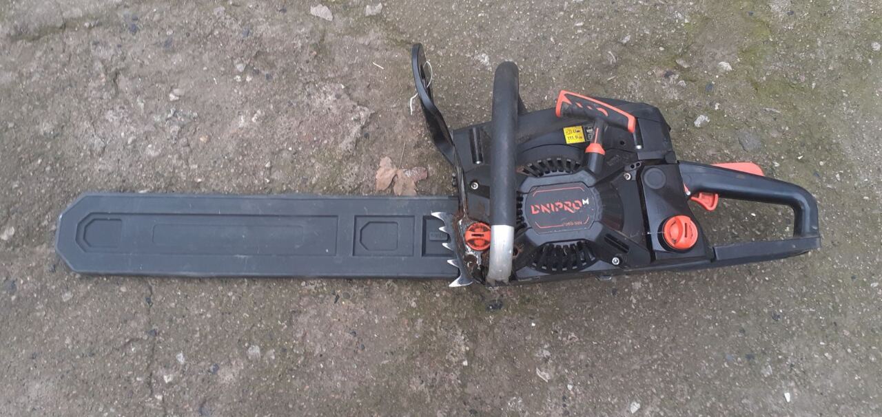 Конфіскація майна за вироком суду: бензопили марки «DNIPRO-M» модель DSG-52H з шиною 20" (50см), чорного кольору з помаранчевими вставками, вживана, стан робочий. Має захисний ковпак. Виконавчий лист № 171/959/25 від 03.07.2025 виданий Криворізьким районним судом Дніпропетровської області.