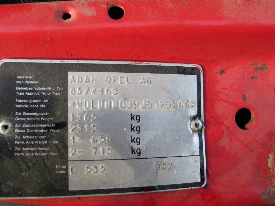 Легковий автомобіль OPEL KADETT, 1988 р.в., номерний знак: АС3735ЕН, номер кузова: W0L000039J5125044
