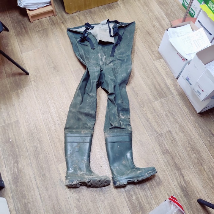 Костюм рибальський гумовий, темного кольору (заброди), бувший у використанні. Кофіскований відповідно до вироку у справі №1/0182/863/2024 182/1446/24 від 20.03.2024 суддя Нікопольського міськрайонного суду Дніпропетровської області Ступак Т.С.