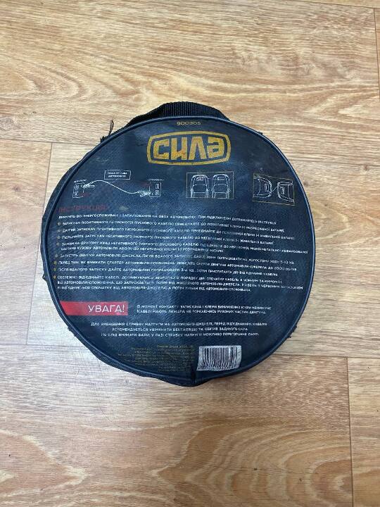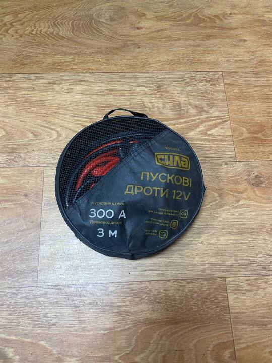 пускові дроти 12V (Сила) довжиною 3 м., пусковий струм 300 А, у наявності чохол, у вживаному стані, робочий стан не перевірявся
