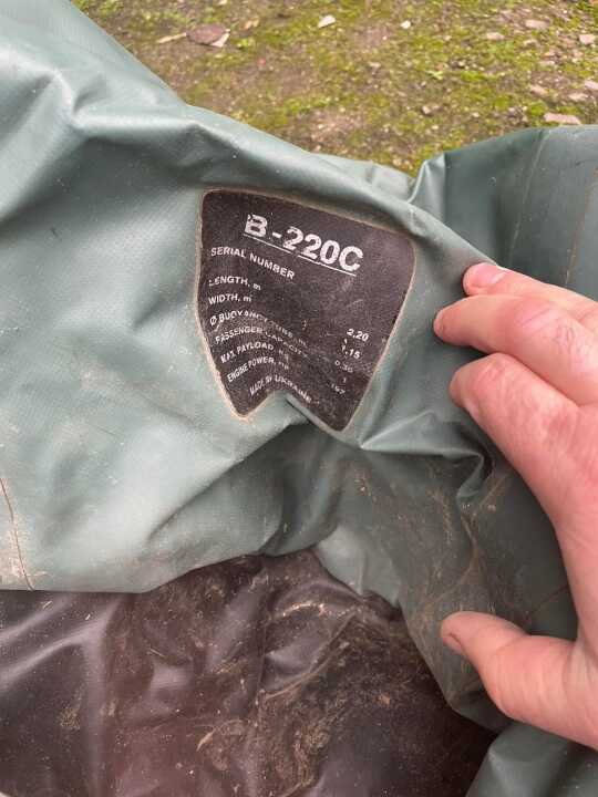 Майно конфісковане з рішенням суду: гумовий човен темно-зеленого кольору марки «BARK» моделі v-220c, два весла та ножний насос для підкачки в комплекті, б/в