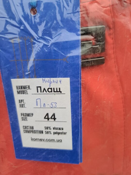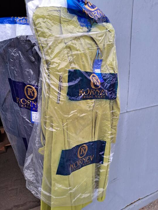 - Одяг верхній жіночий-плащі на плащах є бирки (етикетки) з маркуванням: KORNEV ...НАИМЕН. МОDEL ПЛАЩ - 248 шт., різних кольорів та фасонів, стан новий.