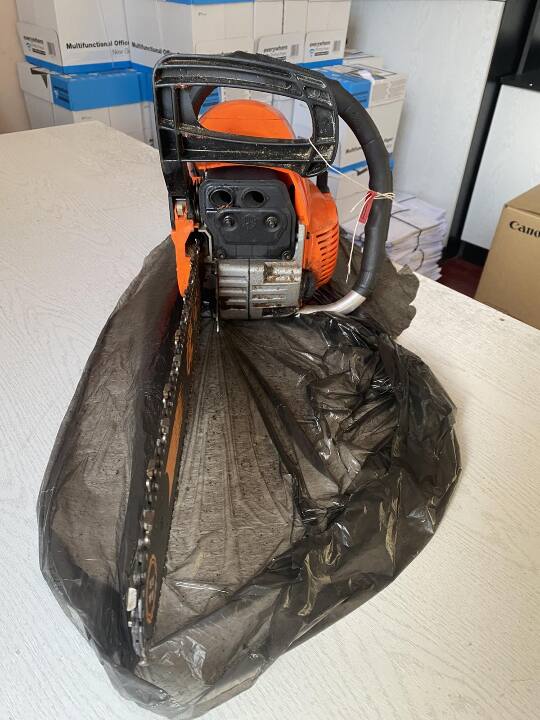 Конфісковане майно за рішенням суду: бензопила марки "Texas" модель "Т03-050", б/в
