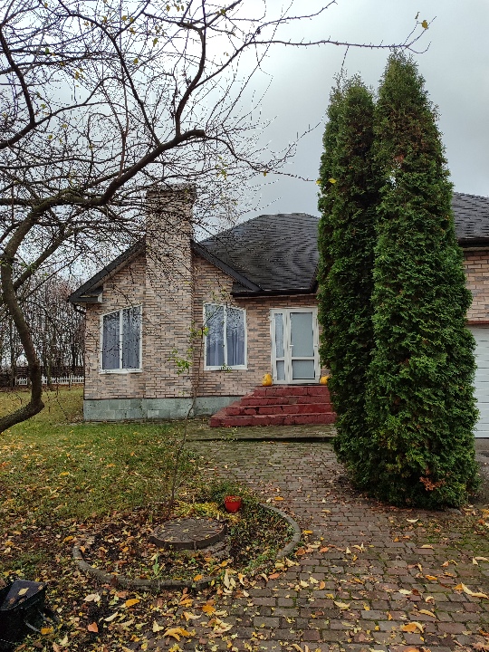 Фундамент будинку - бетон, матеріали стін - дерево, бетон; покрівля - бітумна черепиця; перекриття - дерево; сходи - дерево; підлога - ламінат, плитка.