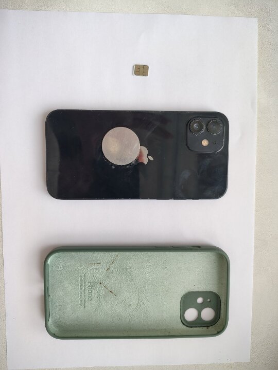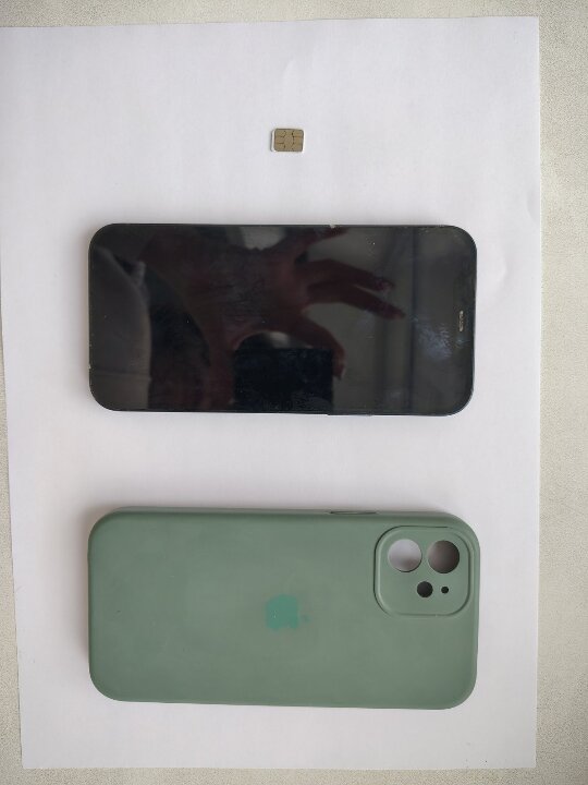 Конфісковане майно за рішенням суду: мобільний телефон "ІPHONE-12" (IMEI 354696403676437) із силіконовим чохлом бірюзового кольору з сім-картою абонементського номеру телефону, бувший у використанні