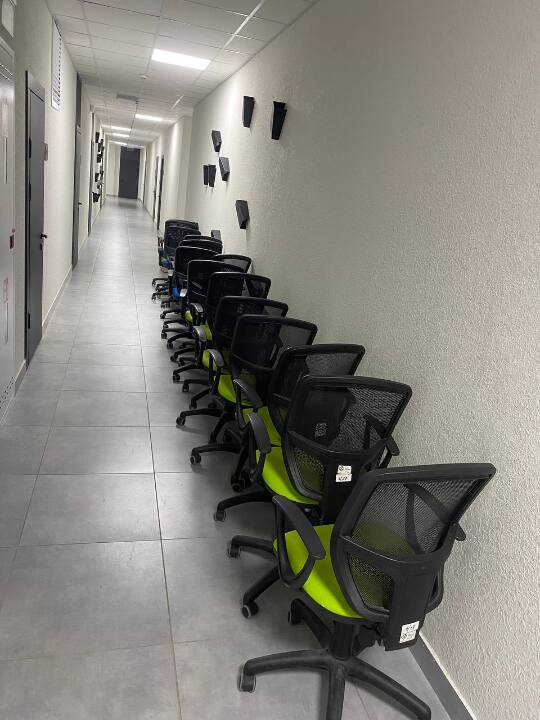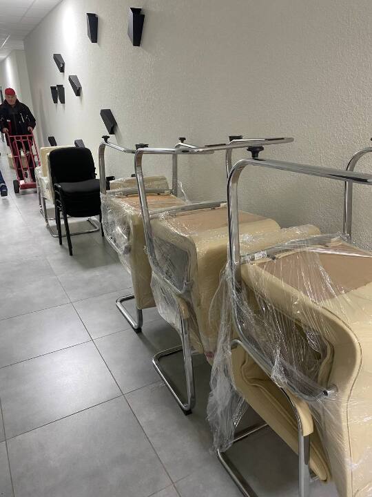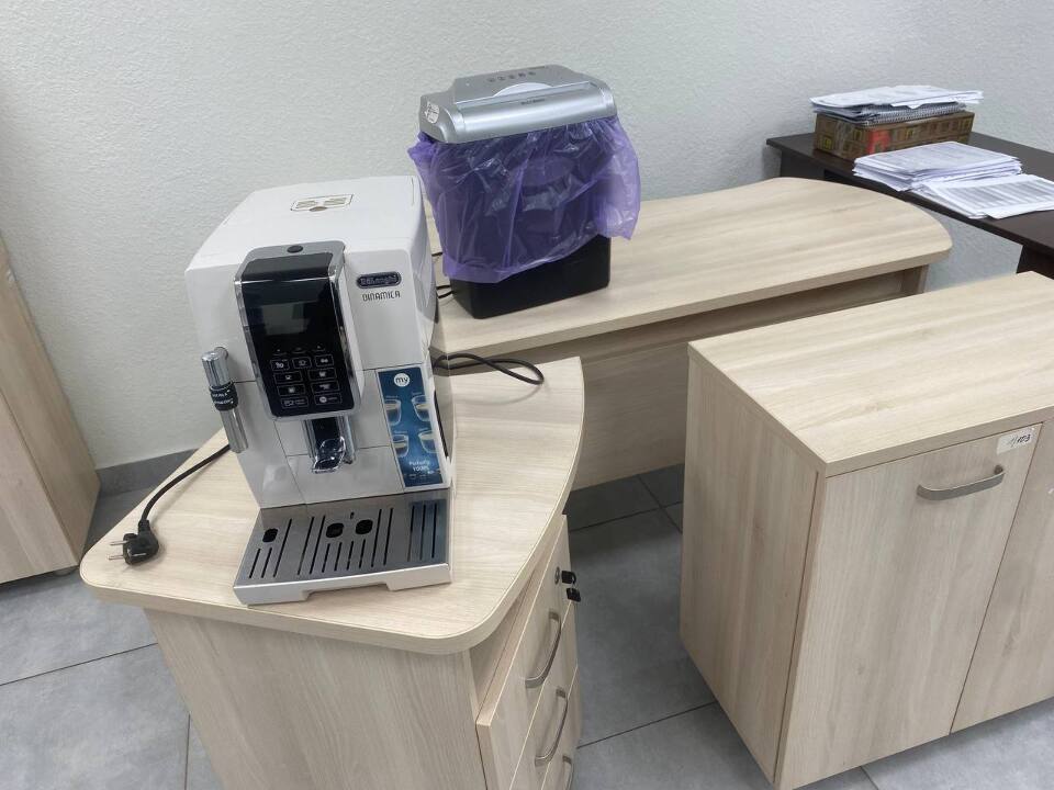 Різнотипні товари в кількості 82 одиниць, Біндер Agent B-30E – 1 шт., Кавомашина Delonghi Dinamica – 1 шт., Шредер маленький – 1 шт., Мікрохвильова піч Gorenije – 1 шт., Холодильник Gorenije – 1 шт., Монітор Dell 27 дюйм. – 6 шт., Монітор Dell 24 дюйм. – 6 шт., Cтілець без коліщаток, білого кольору екошкіра – 8 шт., Стілець офісний, чорний, тканина, без коліщаток – 27 шт., Стілець офісний, чорний еко шкіра, Tack – 8 шт., Меблевий гарнітур білий (шафа для одягу, шафа для документів, 3-х секційні тумби – 2 шт., Стіл кутовий з тумбою (1400*1500*750в – ДСП) – 3 шт., Тумба білого кольору – 1 шт., Стілець офісний на коліщатах (спинка сітка) – 16 шт., бувші у використанні