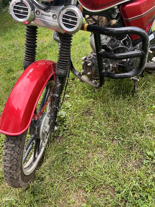 Транспортний засіб марки SPARK, модель: SP110C-2, ДНЗ ВС9775АА, 2017 року випуску, колір - червоний, номер кузова LB411PCF5HC052469. Транспортний засіб у справному стані, має сліди експлуатації, а саме: подряпини та потертості на елементах лакофарбованого покриття (паливний бак, крила, бічні панелі). Деформацій рами, тріщин та інших видимих критичних механічних пошкоджнень не виявлено. Ключі та техпаспорт не вилучалися.