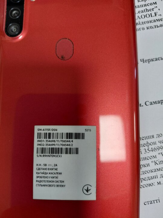 Конфіскація за рішенням суду: мобільний телефон червоного кольору торгівельної марки "Samsung" імеі:3546981170654444, імеі 3546981170654444, імеі 354699117065442, із сім картою оператора мобільного зв'язку №09775-35-611, стан б/в