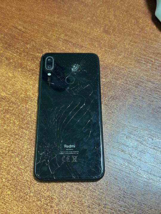 мобільний телефон чорного кольору марки "RedmiNote 7" ІМЕІ1:869136040412688 ІМЕІ2:869136041412687 - екран цілий, задня панель з видимими пошкодженнями - а саме наявні численні тріщини і сколи, камера не пошкоджена, зовнішніх ознак розкриття корпусу чи втручання не виявлено, на корпусі та камері маються незначні потертості. Мобільний телефон перебуває у цілісному стані, або розукомплектування не виявлено. На предмет роботи не перевірявся. Комплектація: без зарядного пристрою та коробки. Конфіскований за рішенням суду б/в.