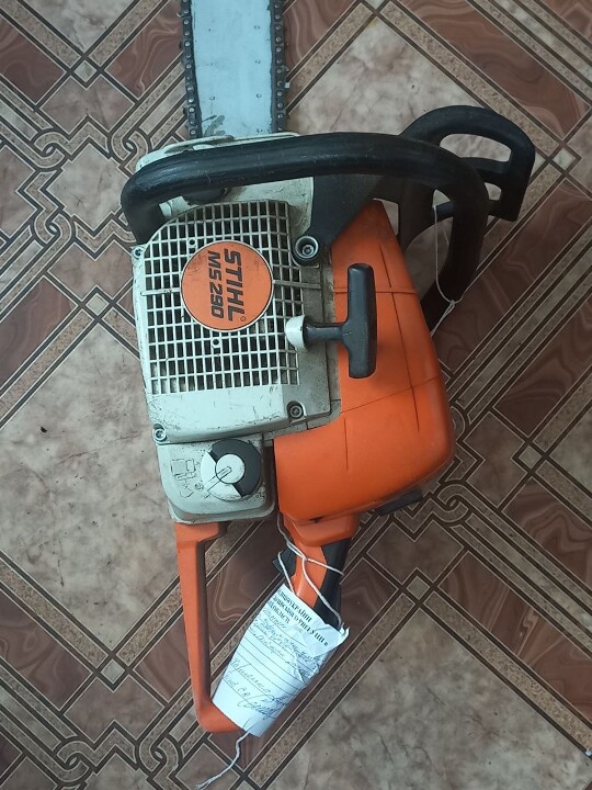 Майно конфісковане за рішенням суду: виконавчий лист № 632/1849/24 виданий 24.02.2025 року Первомайським міськрайонним судом Харківської області. Ланцюгова бензинова пила марки "STIHL", модель "MS290", корпус з пластику білого з помаранчевим кольорів, до якого приєднана шина з ланцюгом, яка закривається чохлом з пластику помаранчевого кольору. На лівому боці корпусу маються два отвори з пробками, під якими бак для мастила та бензину, та пусковий механізм з ручкою.