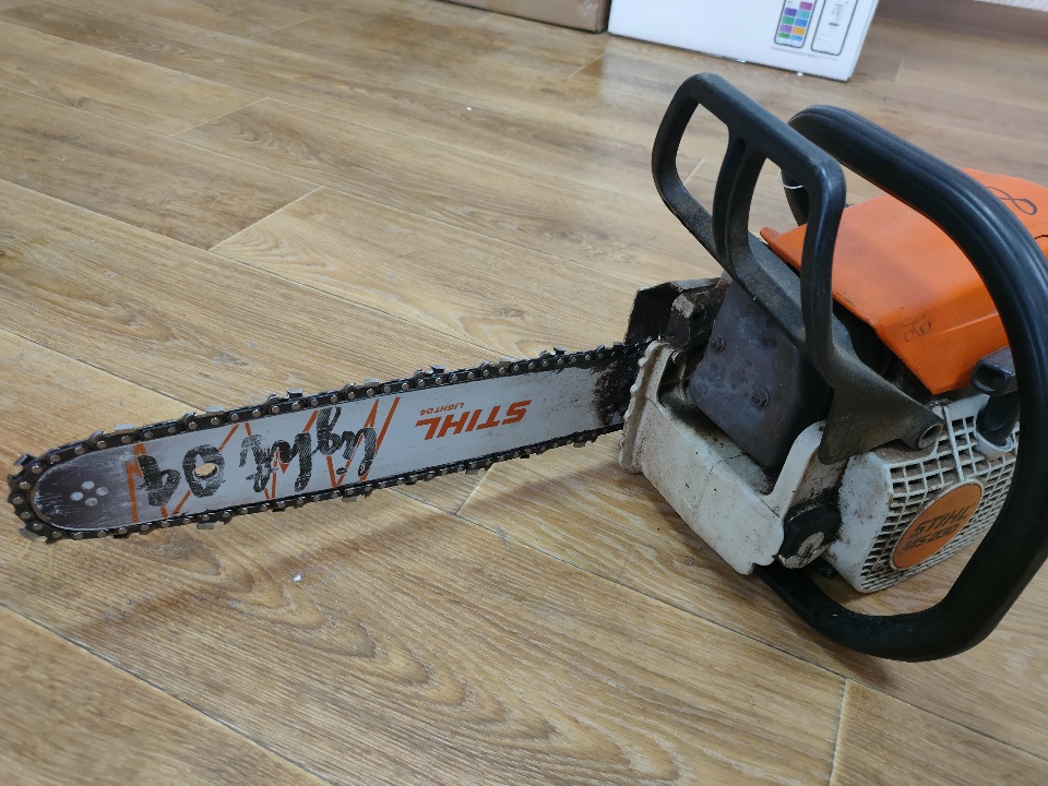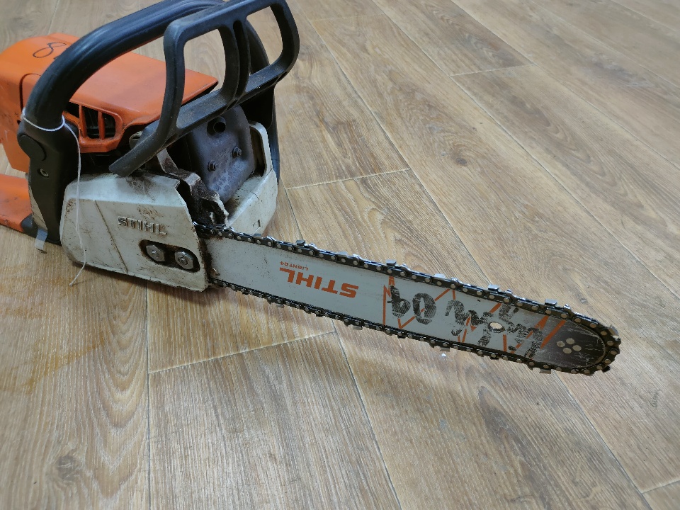 Конфісковане майно за рішенням суду: бензопила Stihl MS230, шина Stihl LIGHT04, помаранчевого кольору, б/в
