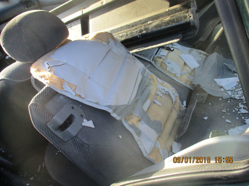 Автомобіль має пошкодження лакофарбового покриття на всьому кузову, наявні сліди корозії по всьому кузову,гума не придатна до використання, на залізних дисках. Салон розкомплектований, має пошкодження сидінь, обшивки салону. Встановити наявність двигуна та його стан не виявилось можливості у зв'язку із поломкою системи відкриття капоту, пробіг встановити неможливо. Транспортний засіб тривалий час не використовувався. Побитий передній бампер. Відсутні номерні знаки. Відсутні ключі та техпаспорт.