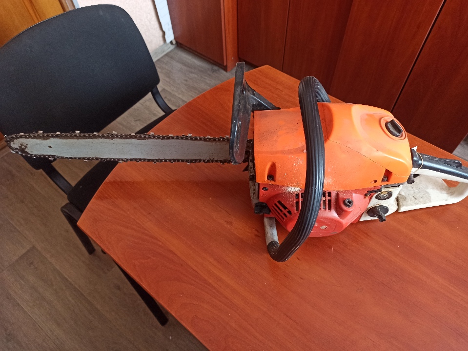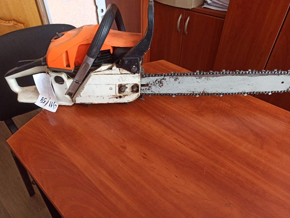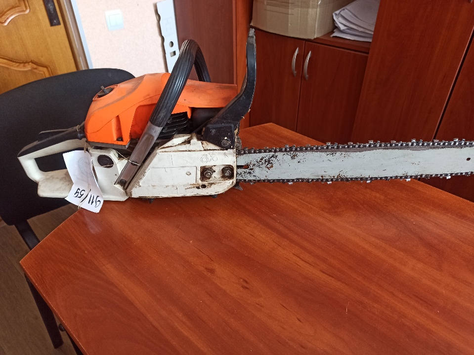 Конфіскація за рішенням суду : бензопила в корпусі помаранчевого кольору без написів та маркувань, бувша у використанні