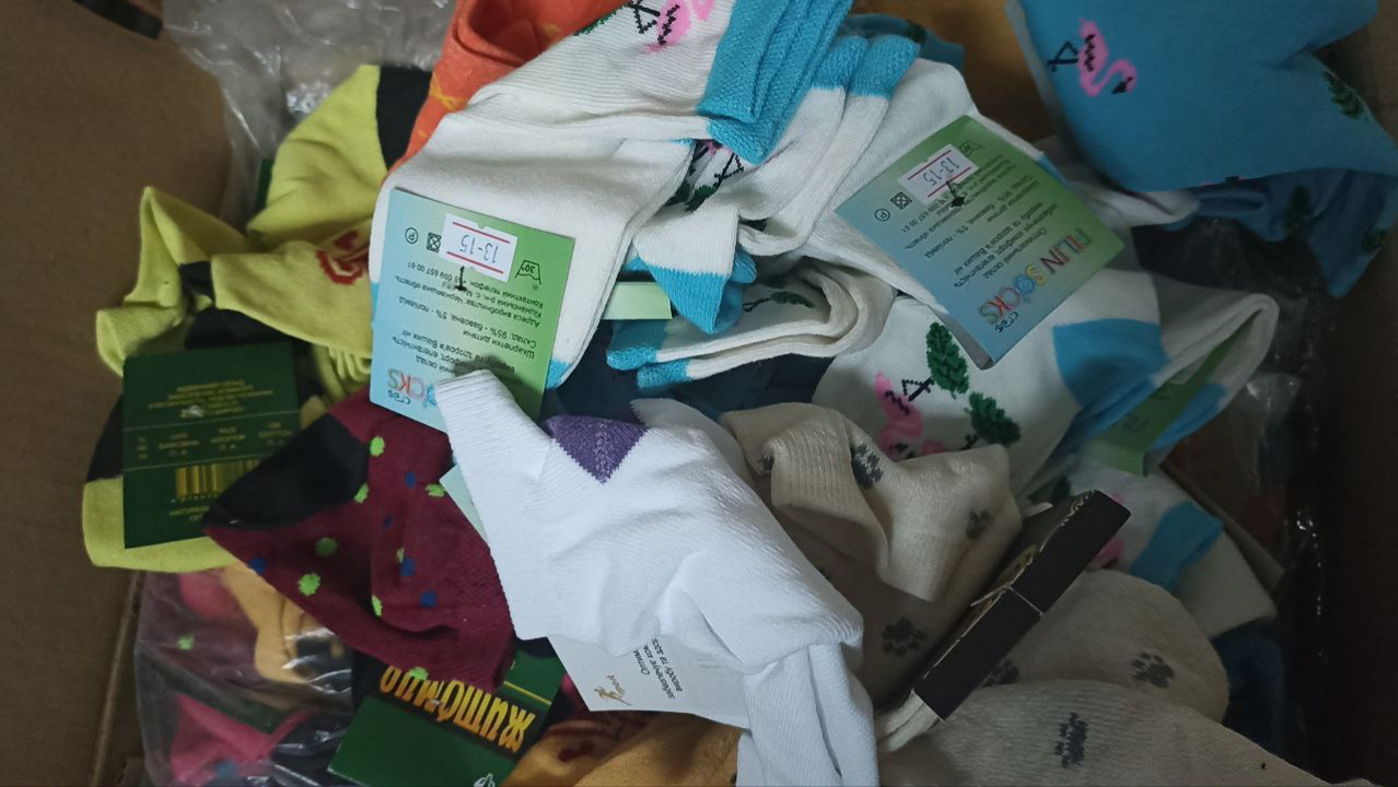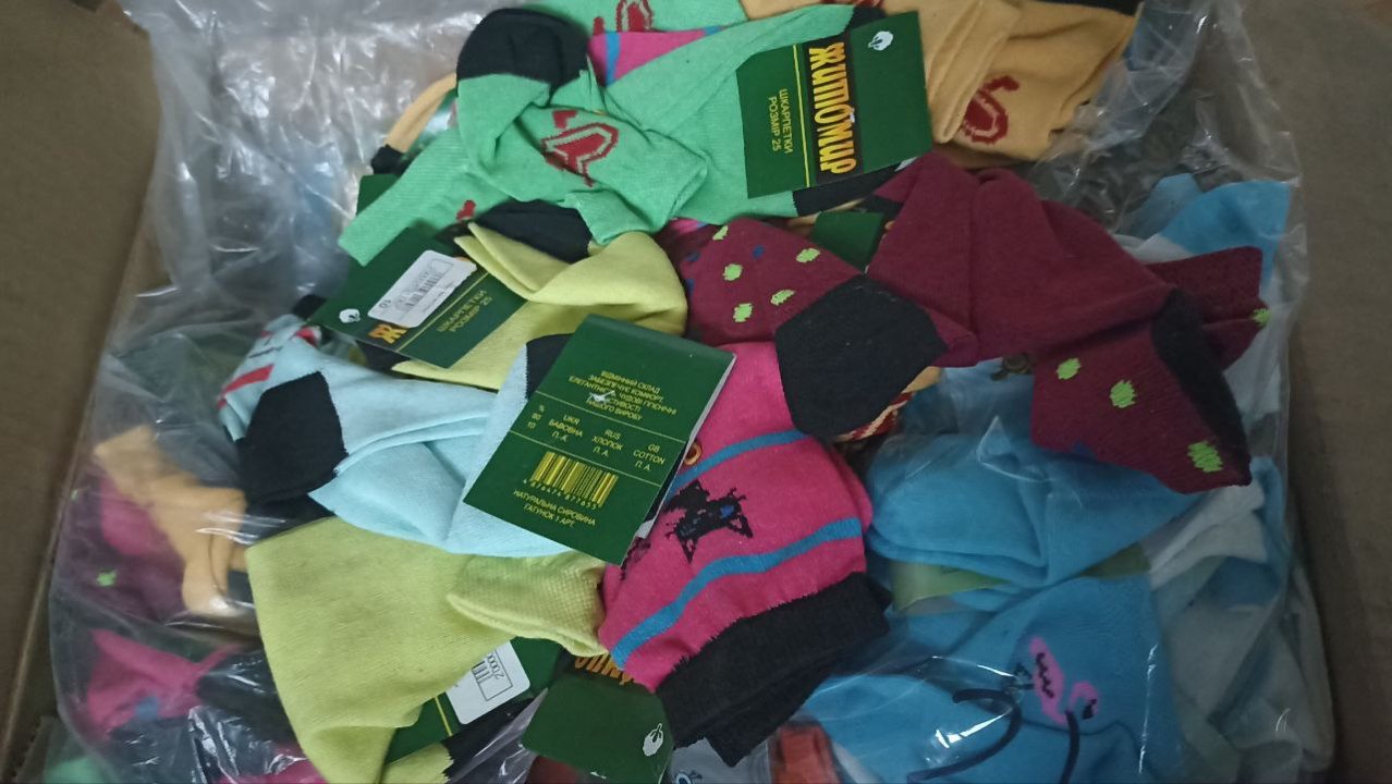 Шкарпетки дитячі в асортименті у кількості 23760 пар та дитячий молочний термостат у кількості 1 шт., без ознак використання