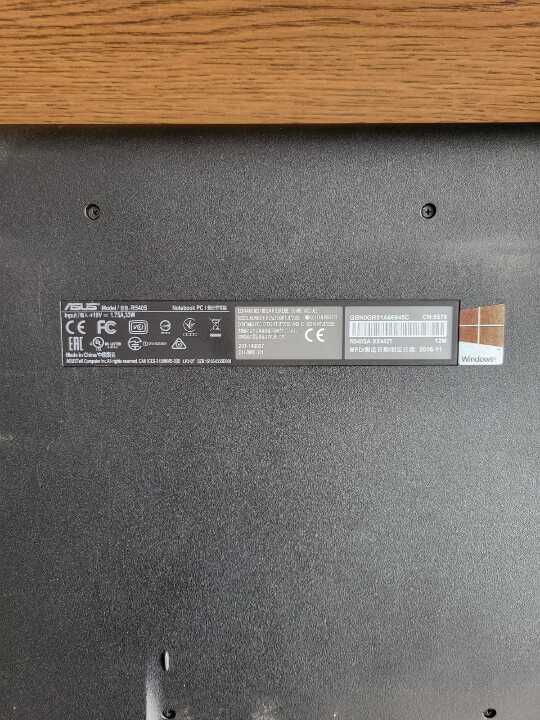 ноутбук чорного кольору марки «ASUS» моделі «R540S», s/n GBNOGR01А66945C. Бувший у використанні. Корпус чорного кольору. Внутрішня панель кольору бежевий металік, місцями потерта. Клавіатура чорного кольору.