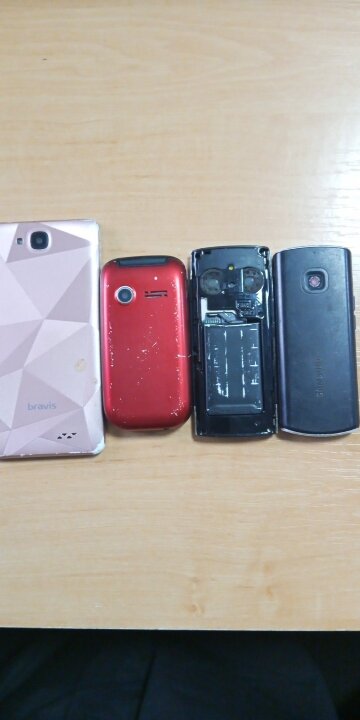 Мобільний телефон марки "Bravis" A 503 Joy IMEI: 354444073469399,354444073469407,рожевого кольору,скло ціле, наявні подряпини,марки "Bravis" F243 (imel : не встановлено),червоного кольору, скло ціле, наявні незначні подряпини,марки "Samsung GT(imel:353098045908644)скло ціле,наявні незначні подряпини,марки "Nokia" Х-2-00 ( imel не встановлено)скло ціле, відсутня задня кришка.Бувше у використанні.Працездатність невідома, стан задовільний. Майно конфісковане за рішенням Казанківського районного суду Миколаївської області від 23.03.2023 ухвала №1-в/478/99/2023.