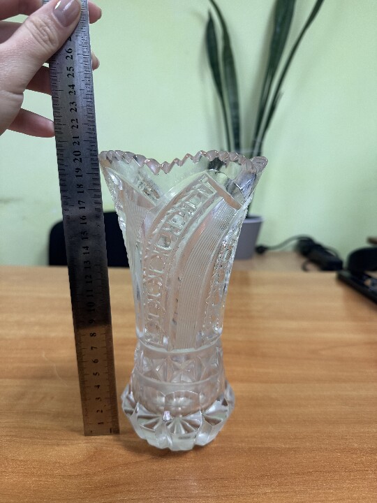 Конфіскація майна за рішенням суду: кришталева ваза для квітів, прозора, з різьбленням, висотою 20см, б/в