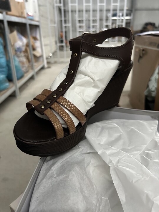 - взуття жіноче на підошві з пластика або гуми, що не закриває щиколотку, та з верхом з натуральної шкіри - босоніжки, колір - коричневий, різних розмірів торгівельної марки «Sara Milani», іноземного виробництва в кількості 18 пар;