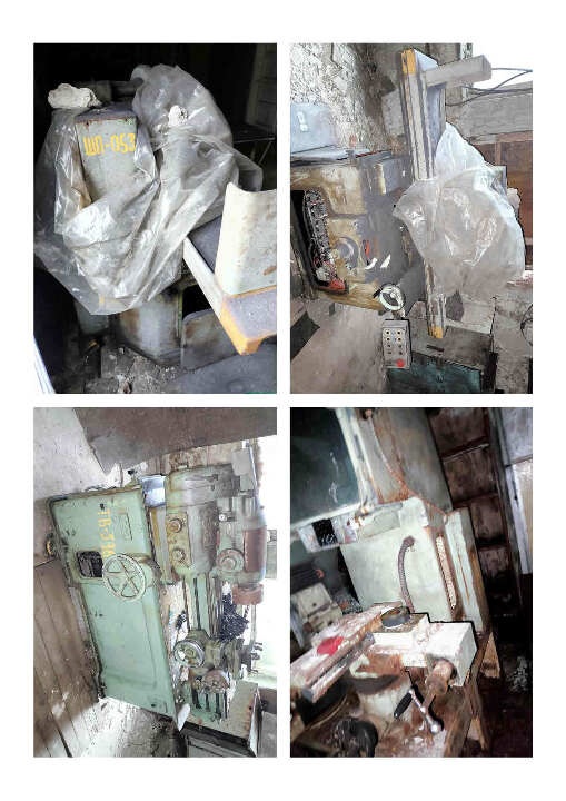 Обладнання (станки, верстати, автомати) у неробочому стані, частково розукомплектовані (відсутні двигуни, частини навісного обладнання, пульти керування, тощо) з інвентарними номерами:ШП-053, ТВ-536, ШП-056, АТ-132, АТ-115, АР-082, АТ-130, АР-086, АТ-121, АТ-129, АТ-123, перебуває у незадовільному стані, механічні та корозійні ушкодження про всьому корпусу та робочих вузлах.