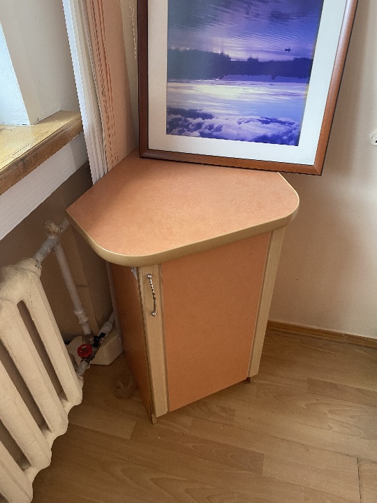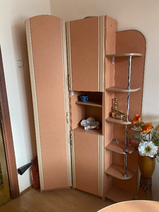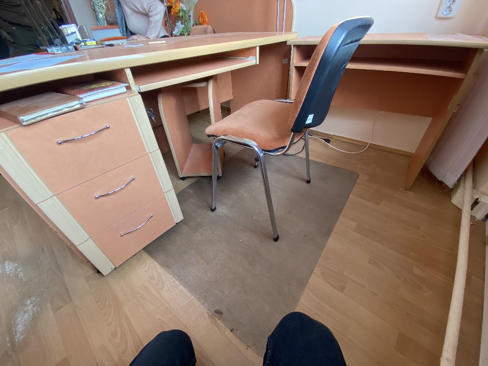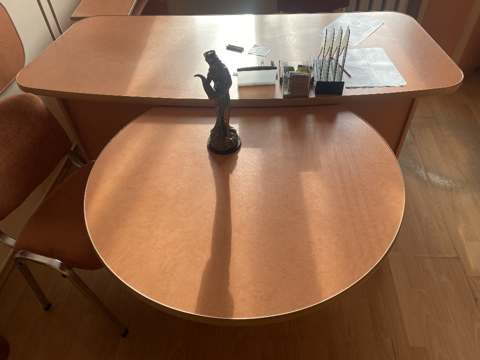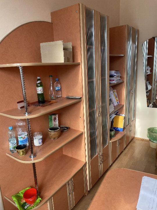 Комплект офісних меблів б/в: стіл офісний з тумбами, стінка офісна з полицями і скляними дверцятами, шафа на дві секції, тумба, приставний столик