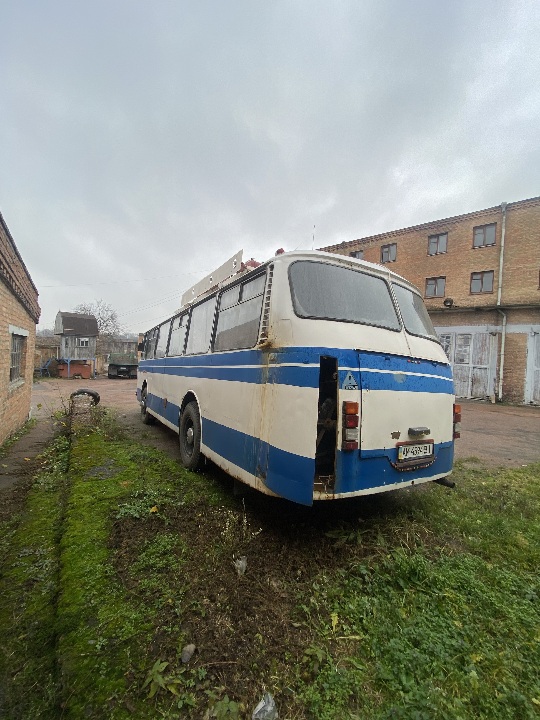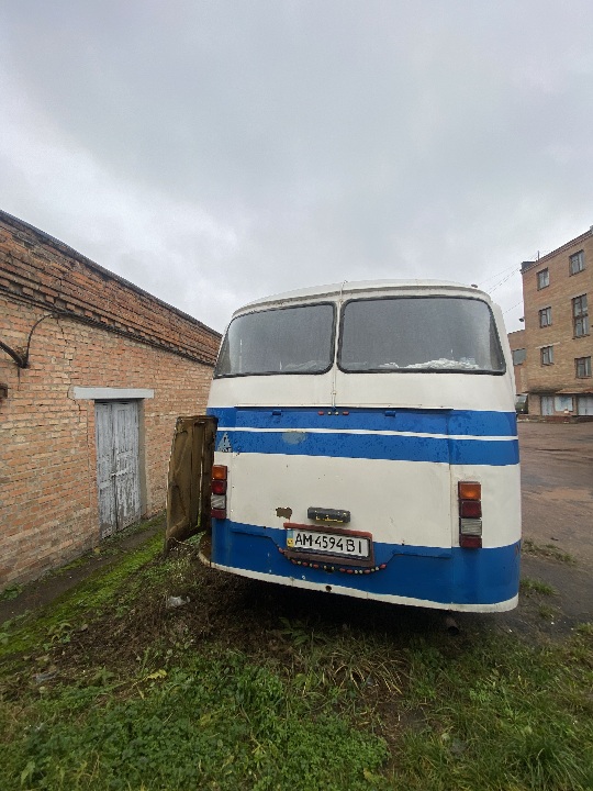 Автобус знаходиться на ходу, в комплектному стані ( наявні сліди підтікання мастила на двигуні та коробці), причеп має задовільний вигляд. Техпаспорт та ключі наявні, одометр несправний, пробіг встановити неможливо.