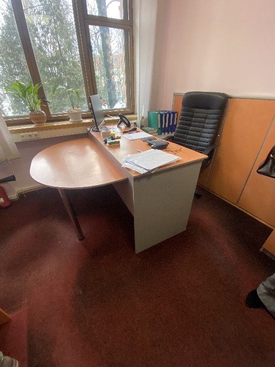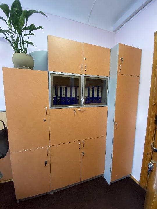 Комплект офісних меблів коричневого кольору б/в: стіл 1 од, шафи 2 од, тумба