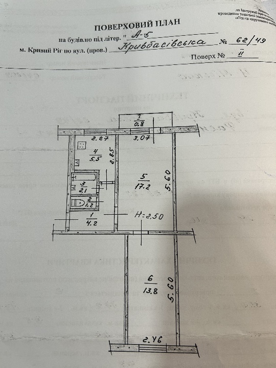 Двокімнатна квартира, загальною площею 44.8 кв.м за адресою: Дніпропетровська обл., м. Кривий Ріг, вул. Кривбасівська, буд. 62, кв. 49