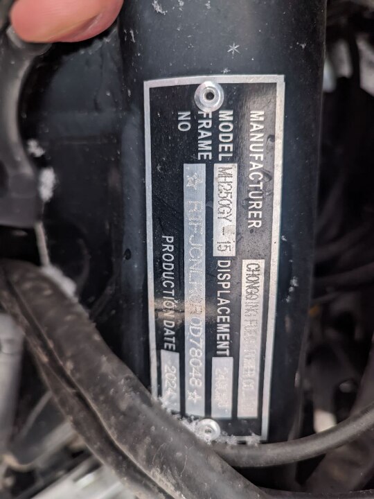 Конфіскація майна за ухвалою суду: мотоцикл марки Tekken R Line 250, номер кузова R1FJCNLR0R0D78048, 2024 року випуску, сірого кольору, потужність 24,5 к.с, тип палива - бензин, коробка передач - механічна. Конфіскація майна на підставі виконавчого листа № 587/310/25 від 12.08.2025 виданого Сумським районним судом. Реєстраційні документи відсутні, реєстраційний номер відсутній. При візуальному огляді помітні сліди злущення фарби, корозії рами, бризговиків. Ходові властивості та робота двигуна не перевірялася. Ключі відсутні. Загальний стан задовільний.